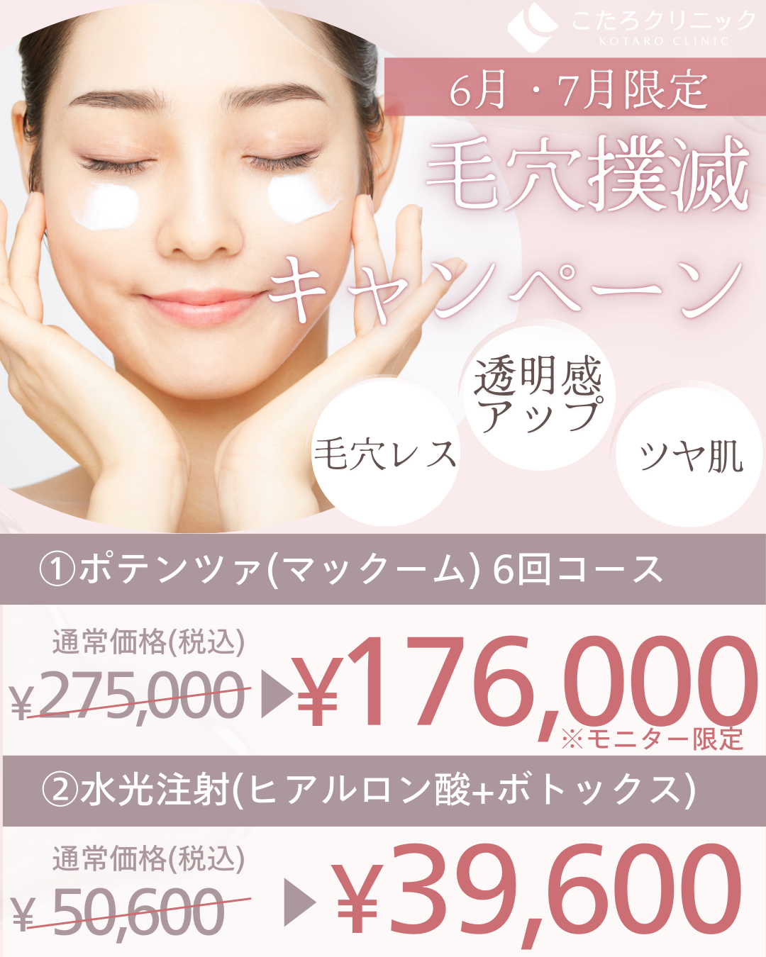 • 対象施術:ポテンツァ(マックーム導入 )6回コース※モニター限定※・水光注射(ヒアルロン酸+ボトックス)