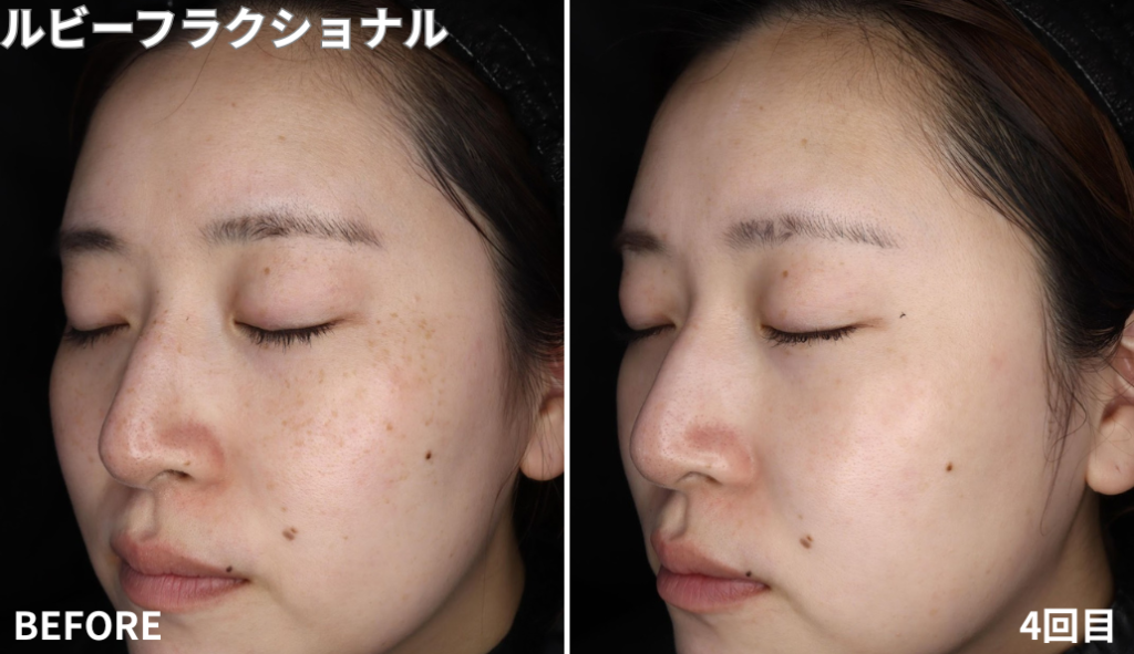ルビーフラクショナルレーザーを顔全体に計4回(1ヶ月間隔)照射。