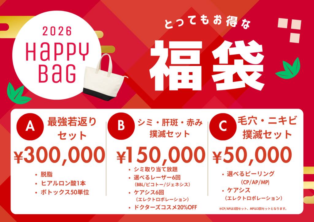 こたろクリニックでは、毎年大人気の人気施術を組み合わせた1月限定の美容医療福袋を数量限定でご用意しました。