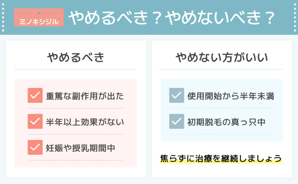 - 4 ミノキシジルをやめるべきタイミングとやめない方が良い人